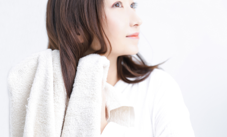 濡れている髪はダメージを受けやすい状態にあるため、そっとタオルで包み込み、優しく水分を吸収させて下さい。タオルで髪を挟んで、軽くプレスするようなイメージですね。